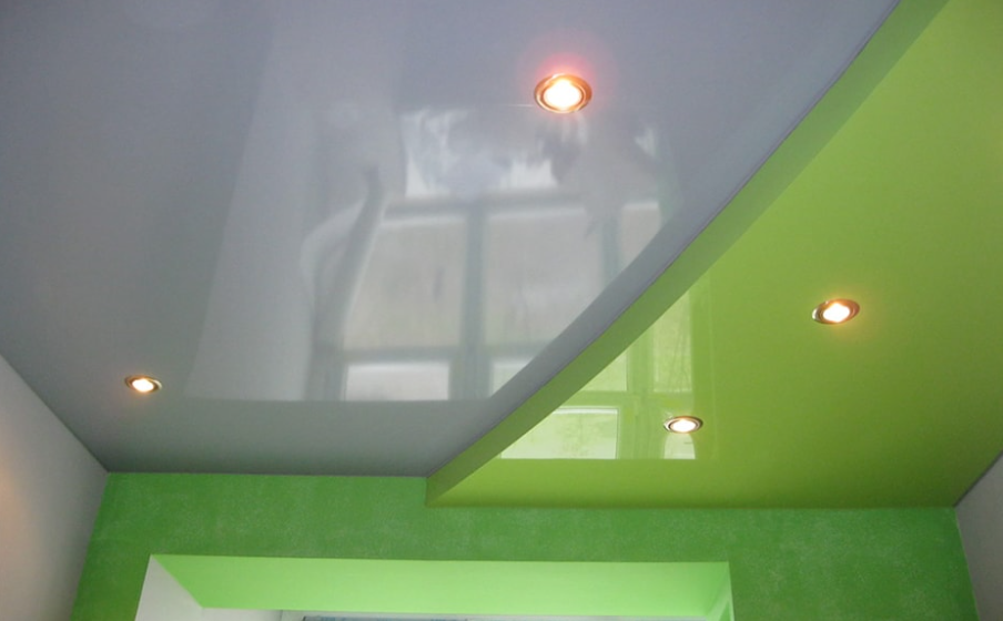 Нагревают с применением пушки, чтобы размягчить. Фиксируют в багеты, начиная с одного угла, затем в противоположном и по сторонам; - Выполнение светильников и дополнительных элементов;